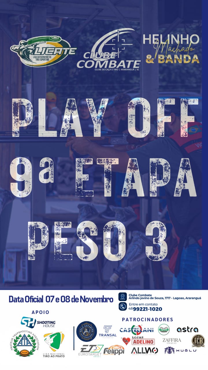 A última prova, o PlayOFF, acontecerá nos dias 07 (sexta feira) e 08 (sábado) de novembro, sendo sediado pela equipe do Clube de Caça e Tiro de Combate, do nosso amigo Guinho.
